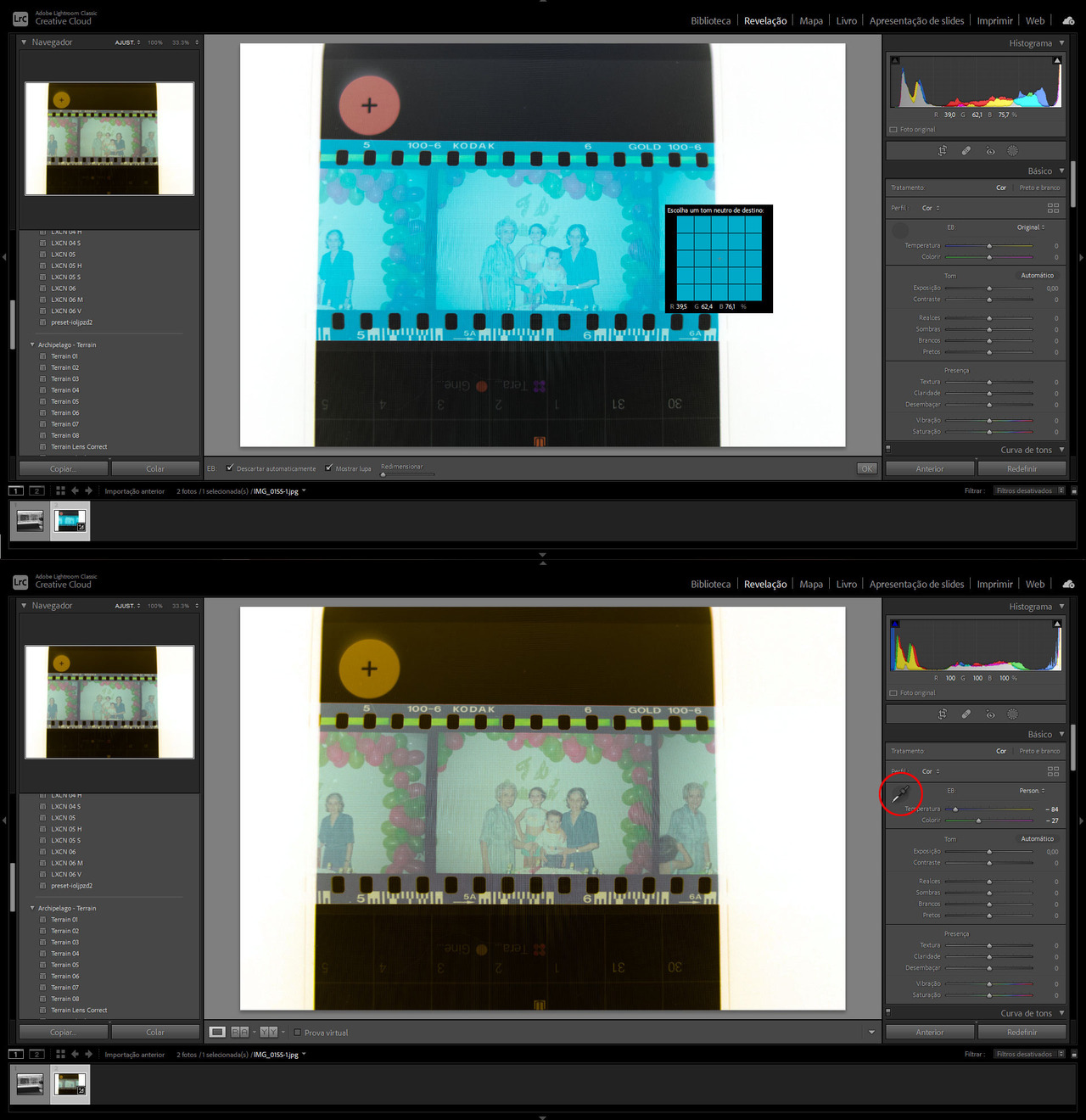 Use o conta gotas na área de excesso de azul para ajustar automaticamente a temperatura das cores.
